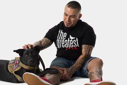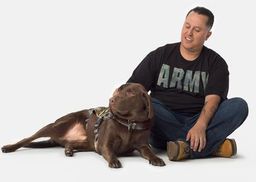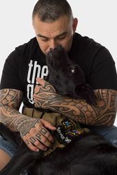 —Emilio Gallegos, U.S. Marine Corps (1999–2010). Deployed to Iraq. Purple Heart recipient. Service dog and training provided by Operation Freedom Paws in 2016.